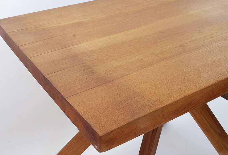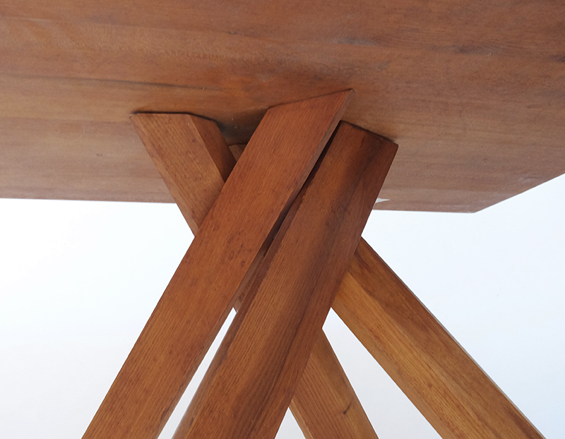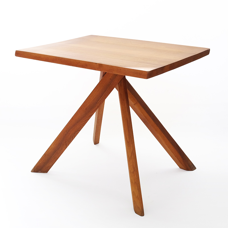 1960年代にフランスのピエール・シャポーがデザインしたテーブルです。天板のエッジがどの面も平行四辺形になっています。エルム材製
