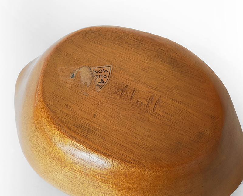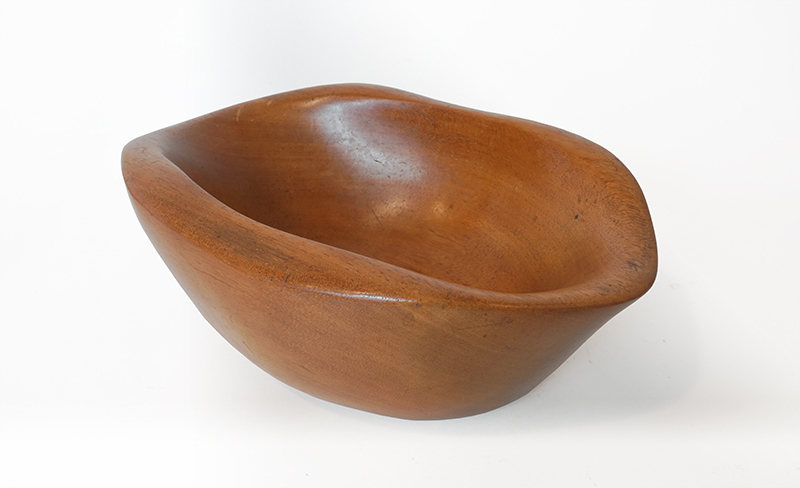 フランス1950年代。彫刻家のアレクサンドル・ノルの希少なボウルです。 ノルは彫刻家ですが、イスやチェスト、テーブルなどの家具やトレイ、小物入れ等の生活雑貨類も多く作っています。 裏面にサインが彫られています。 マホガニー