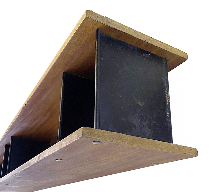 シャルロット・ペリアンがデザインしたビブリオテック(本棚)です。ステフ・シモンエディション。1958年、スチールラッカー塗装、マホガニー、合板材