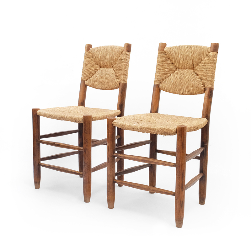 1960年代、フランス。オーク材、rush材製。 ペア売