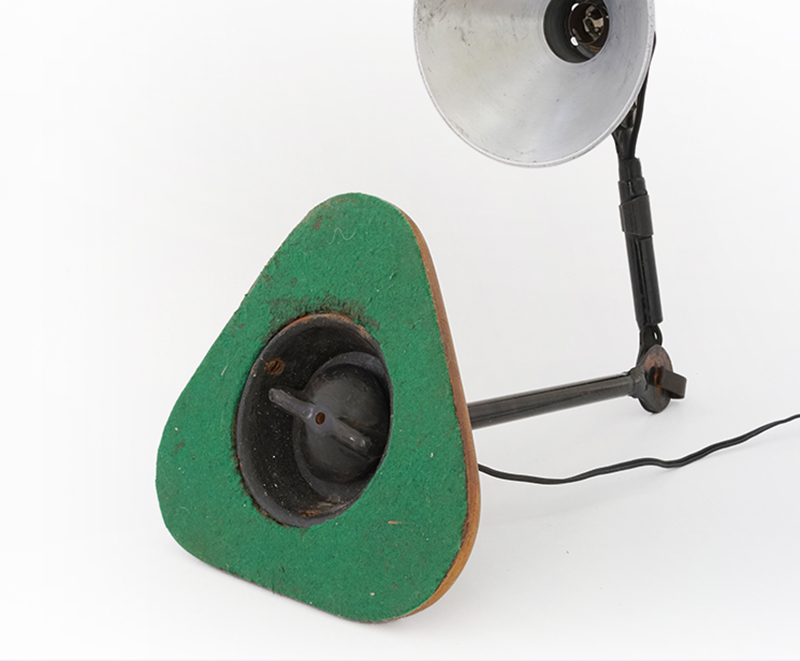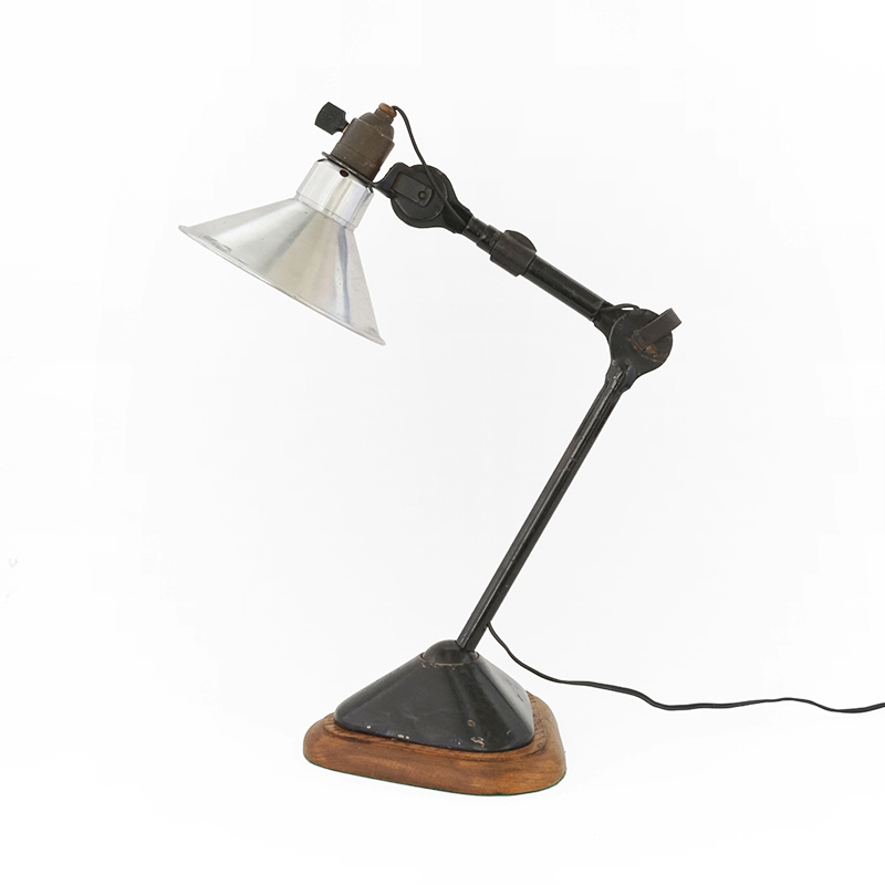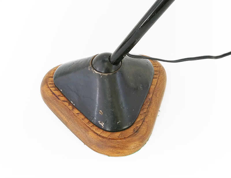 ランプ・グラのデスクランプです。非常に希少なモデル207、ウッドベースにこれも珍しい1076のリフレクタがついています。このモデルには刻印はありません。