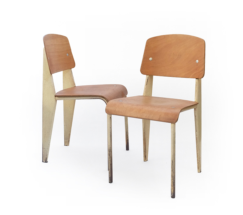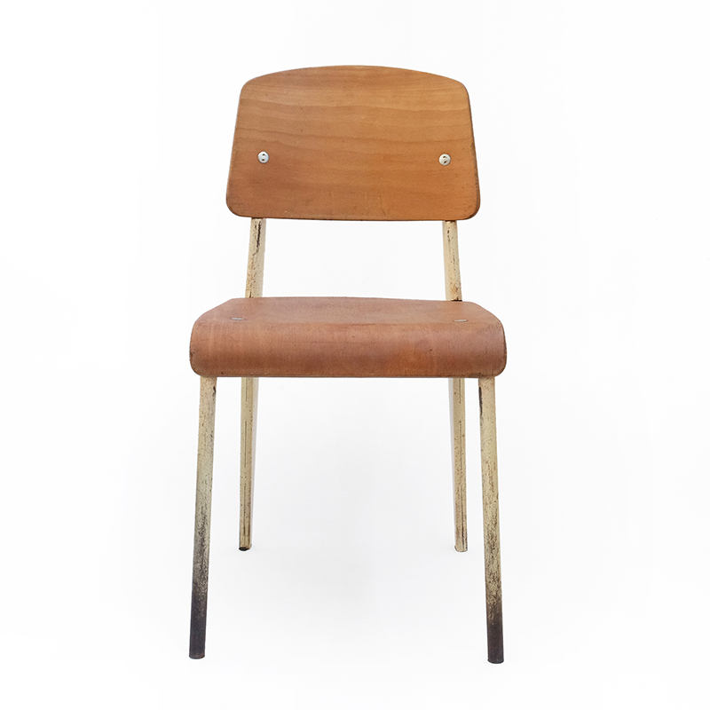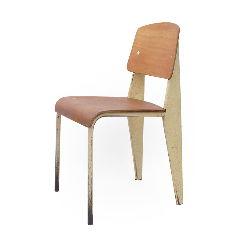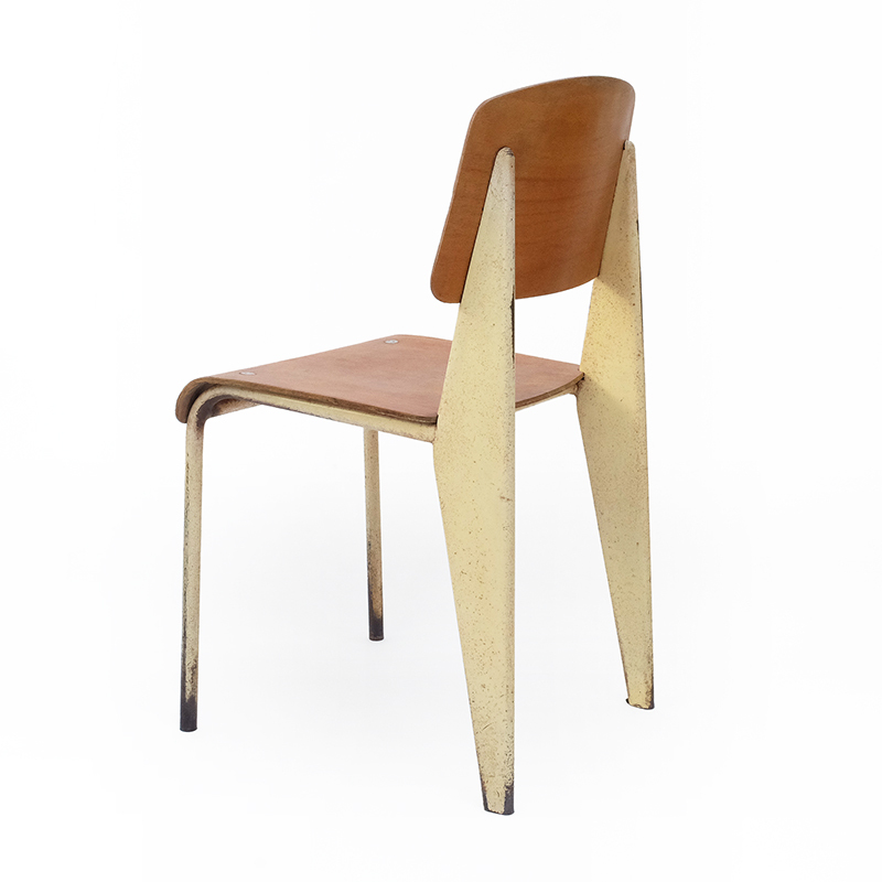ジャン・プルーヴェのスタンダードチェア。オリジナルカラーのアイボリーです。1950年代、フランス。スチール、プライウッド。