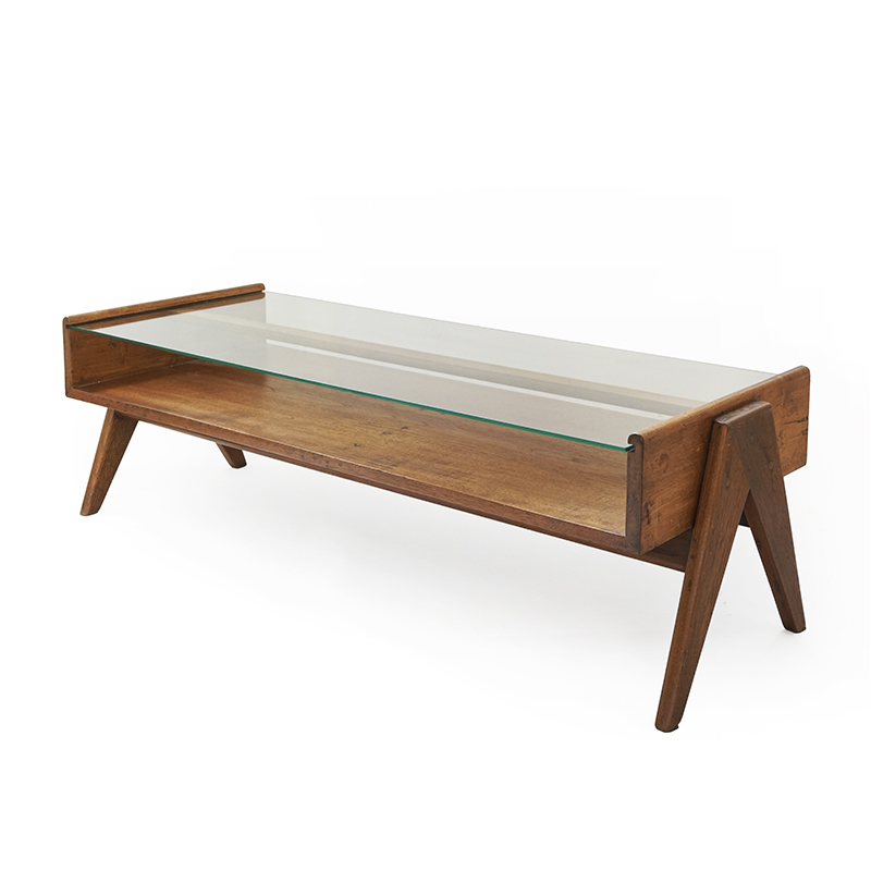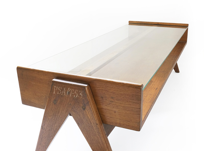 ピエール・ジャンヌレがインドのチャンディーガルのプロジェクトのためにデザインしたガラストップのテーブルです。